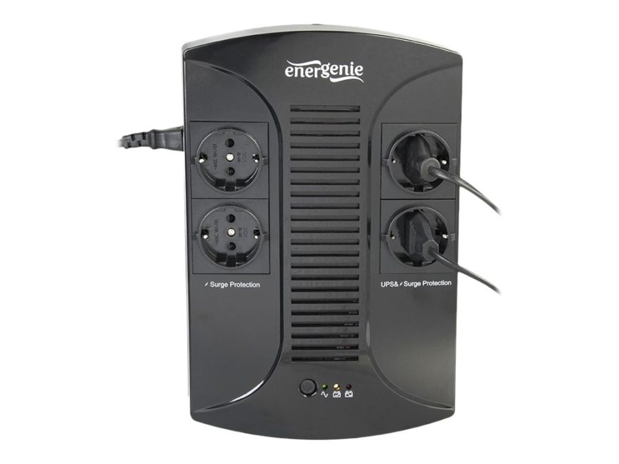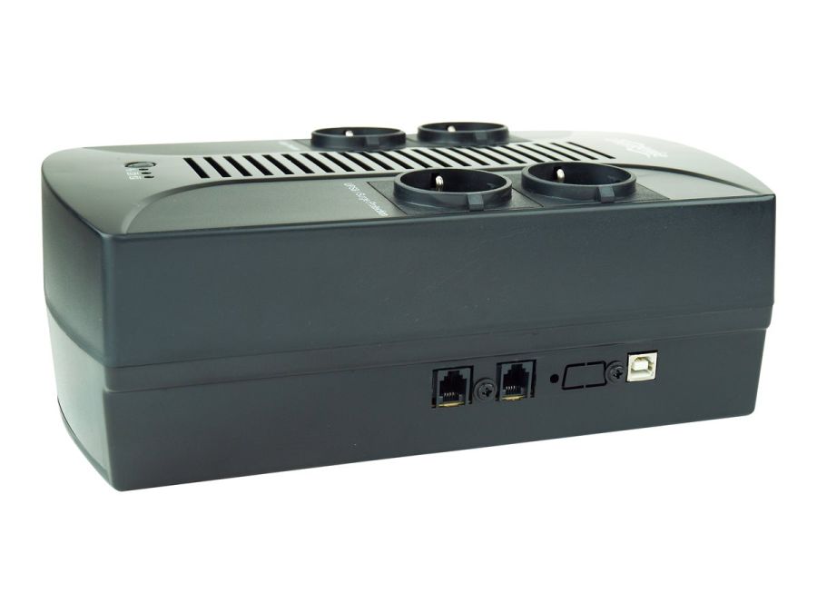 4 gniazda wyjściowe: Urządzenie posiada 4 gniazda standardu Schuko. Dwa z nich zapewniają pełne podtrzymanie bateryjne (UPS), a pozostałe dwa działają jako zaawansowana ochrona przeciwprzepięciowa dla mniej krytycznych urządzeń.