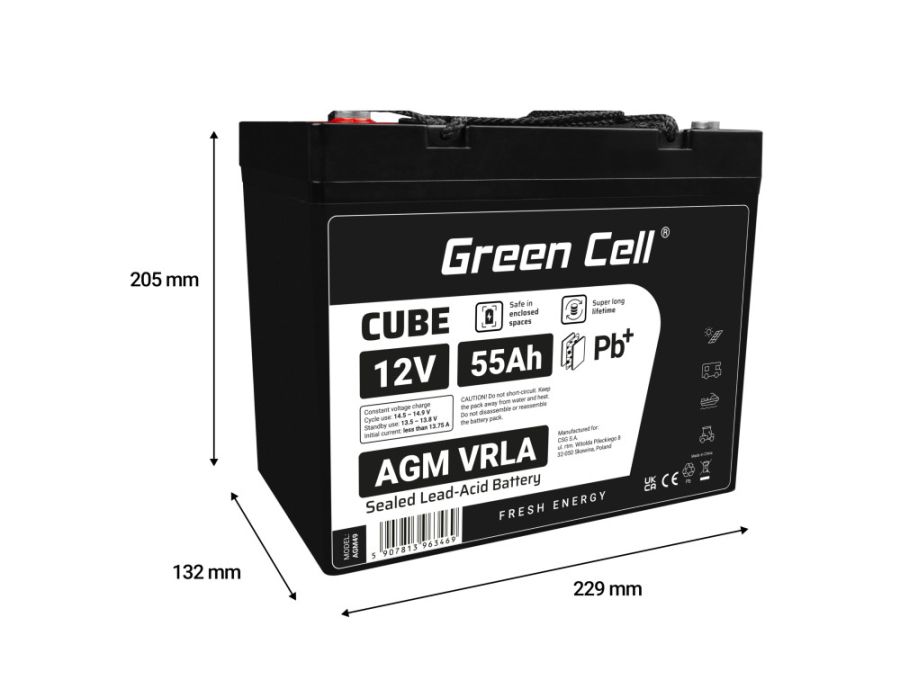 Green Cell Cube AGM12V55AH-J IP54 12V 55Ah