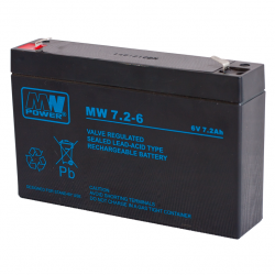 | MW 7,2-6 | 6 V | 7,2 Ah | 6-9 lat | 151 × 34 × 100 mm | 1,30 kg | Faston 187 |