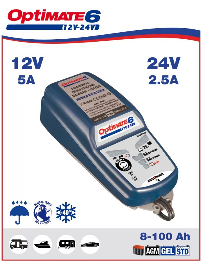 OptiMate 6 12/24 prostownik jest idealny do 12V i 24 V baterii, które wymagają dokładnego ładowania z kontrolą temperatury i bezpiecznego utrzymania w perspektywie długoterminowej. Wybór napięcia pomiędzy 12V 24V gwarantuje, dostosowanie do dowolnego napiecia akumulatora.CECHY SZCZEGÓLNE: