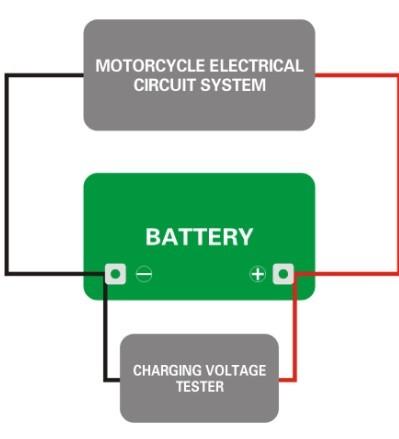 2. Przed montażem należy skontrolować system obwodów elektrycznych, przede wszystkim ładowanie motocykla za pomocą multimetra / woltomierza.