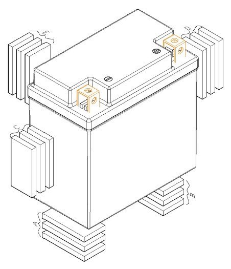 W normalnych okolicznościach litowo-jonowy akumulator powinien być tej samej wielkości lub mniejszy niż pierwotny akumulator. W przypadku analogicznych wymiarów akumulator można bezpośrednio zainstalować. W przypadku, gdy jego rozmiar jest mniejszy należy użyć znajdujące się opakowaniu podkładki dystansowe. Podkładki można połączyć w taki sposób, aby wysokość nowego akumulatora odpowiadała pierwotnemu akumulatorowi . Element składowy opakowania stanowi również przylepna płyta piankowa, którą można nalepić po bokach lub na spodnią część w taki sposób, aby rozmiary odpowiadały wielkości pierwotnego akumulatora.