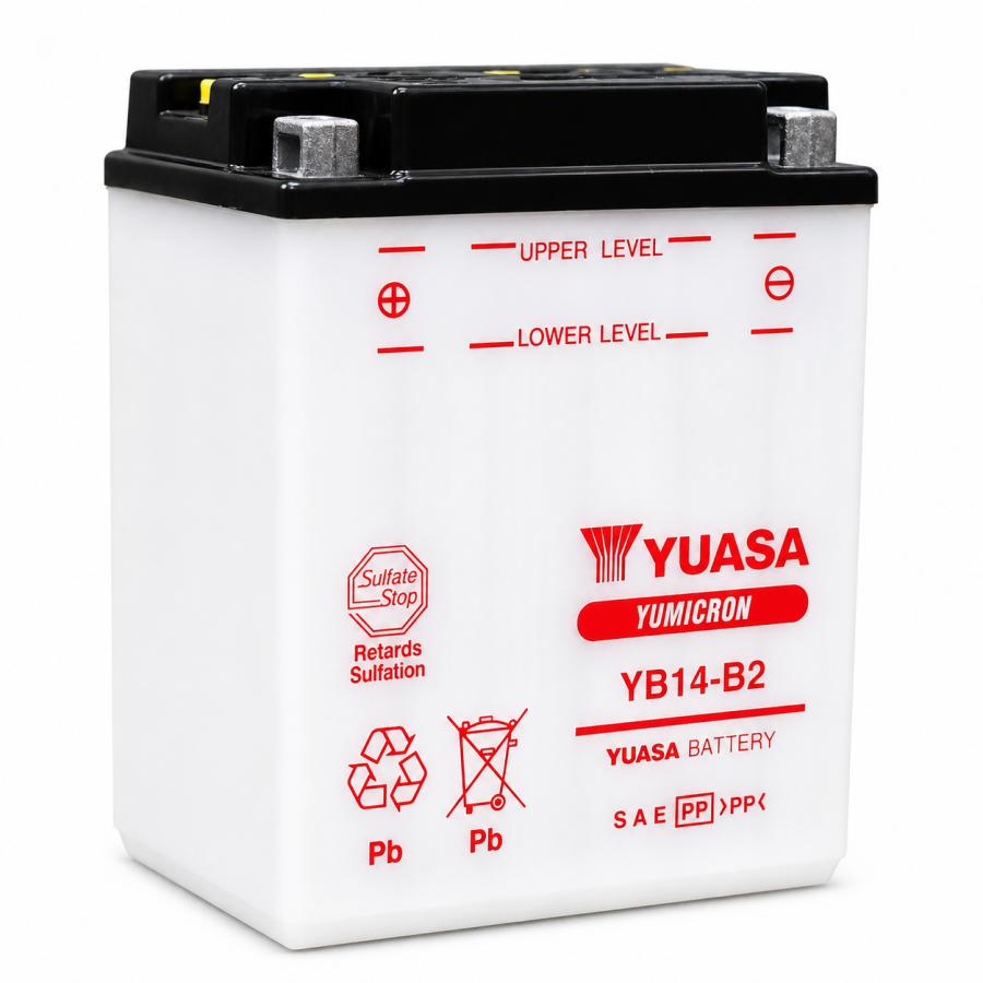 Model Yuasa YB14-B2 to wysokowydajny akumulator konwencjonalny zaprojektowany dla wymagających motocykli turystycznych i cruiserów. Dzięki opatentowanej technologii separatorów, oferuje on o 30% wyższy prąd rozruchowy niż standardowe modele o tych samych wymiarach.