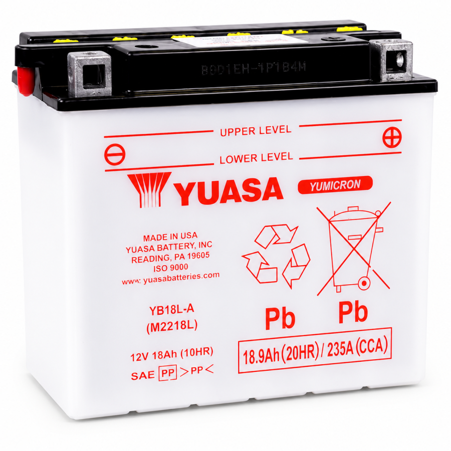 Model Yuasa YB18L-A to wysokowydajny akumulator 12-woltowy, należący do serii High Performance YuMicron. Dzięki unikalnej konstrukcji wewnętrznej z większą liczbą płyt rozruchowych, zapewnia o 30% wyższy prąd startowy w porównaniu do standardowych akumulatorów kwasowych. Jest to sprawdzony wybór dla motocykli turystycznych marek takich jak Moto Guzzi .