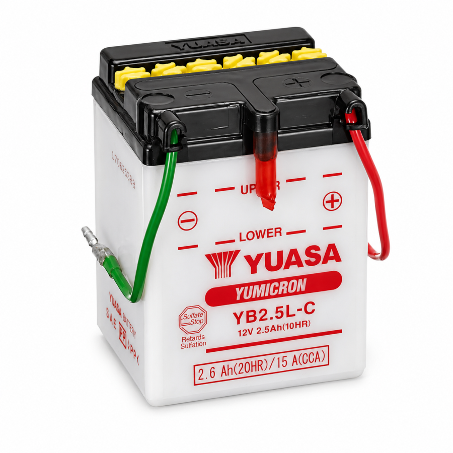 Model Yuasa YB2,5L-C to wysokowydajny akumulator 12-woltowy z serii High Performance YuMicron. Dzięki unikalnej konstrukcji z cienkimi separatorami, akumulator ten oferuje o 30% więcej mocy startowej niż standardowe modele kwasowe o tych samych wymiarach. Jest to idealny wybór dla lekkich motocykli i skuterów.