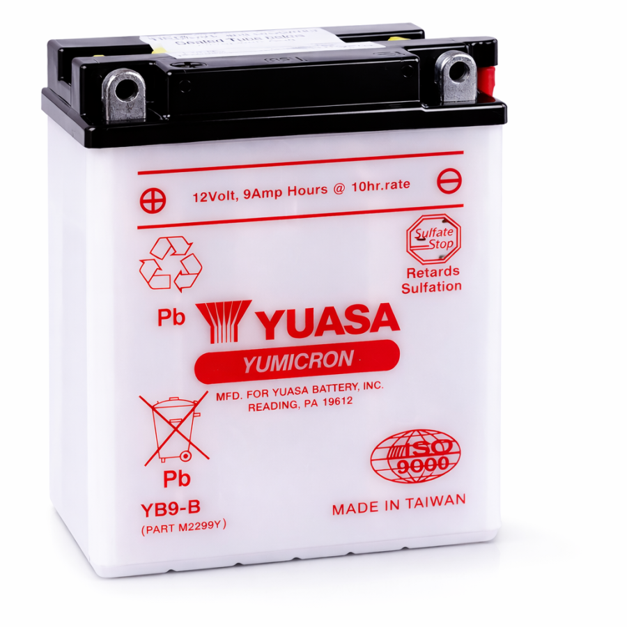 Model Yuasa YB9-B to wysokowydajny akumulator konwencjonalny z serii YuMicron. Oznaczenie CP (Combo Pack) gwarantuje, że w zestawie otrzymujesz precyzyjnie odmierzony zasobnik z elektrolitem, co zapewnia pełną świeżość baterii w momencie aktywacji.